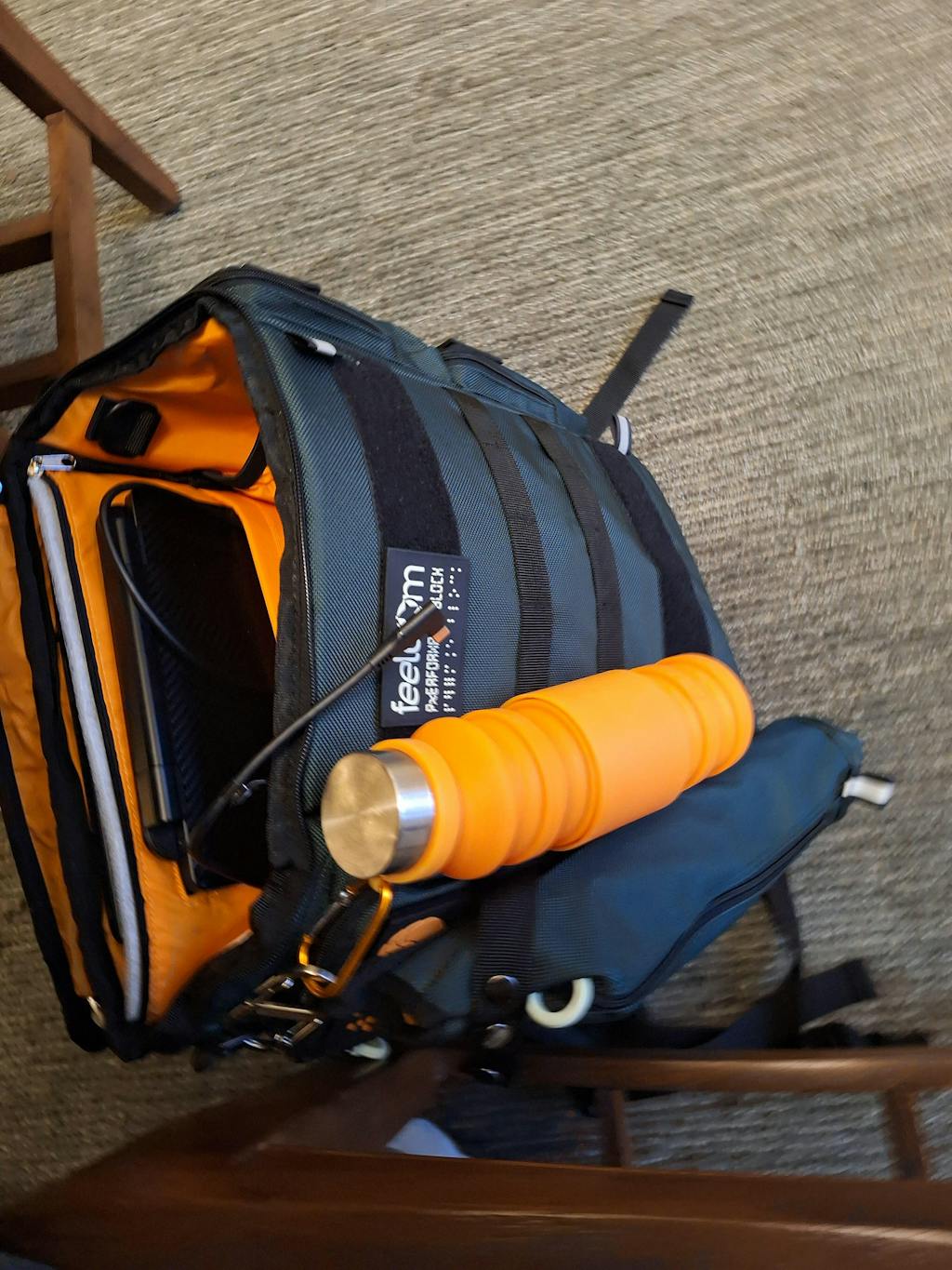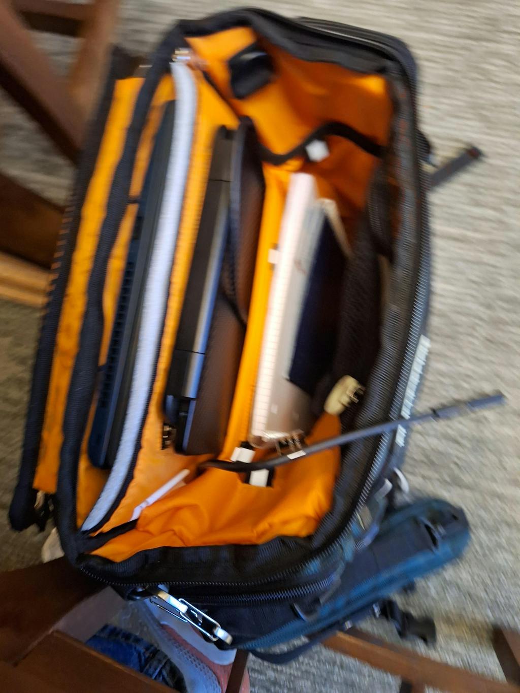 I am visually impaired, and used a REI backpack to hold my items include a laptop water bottle etc. It worked, but difficulty pulling my items out was difficult. The high contrasting colors helps me find my laptop, headphones etc. but the zippers in which I had difficulties with before from from finding the zipper to ensuring the zipper does not get caught on fabric. Finally the backpack stands up which allows me to easily fish through backpack getting my items.