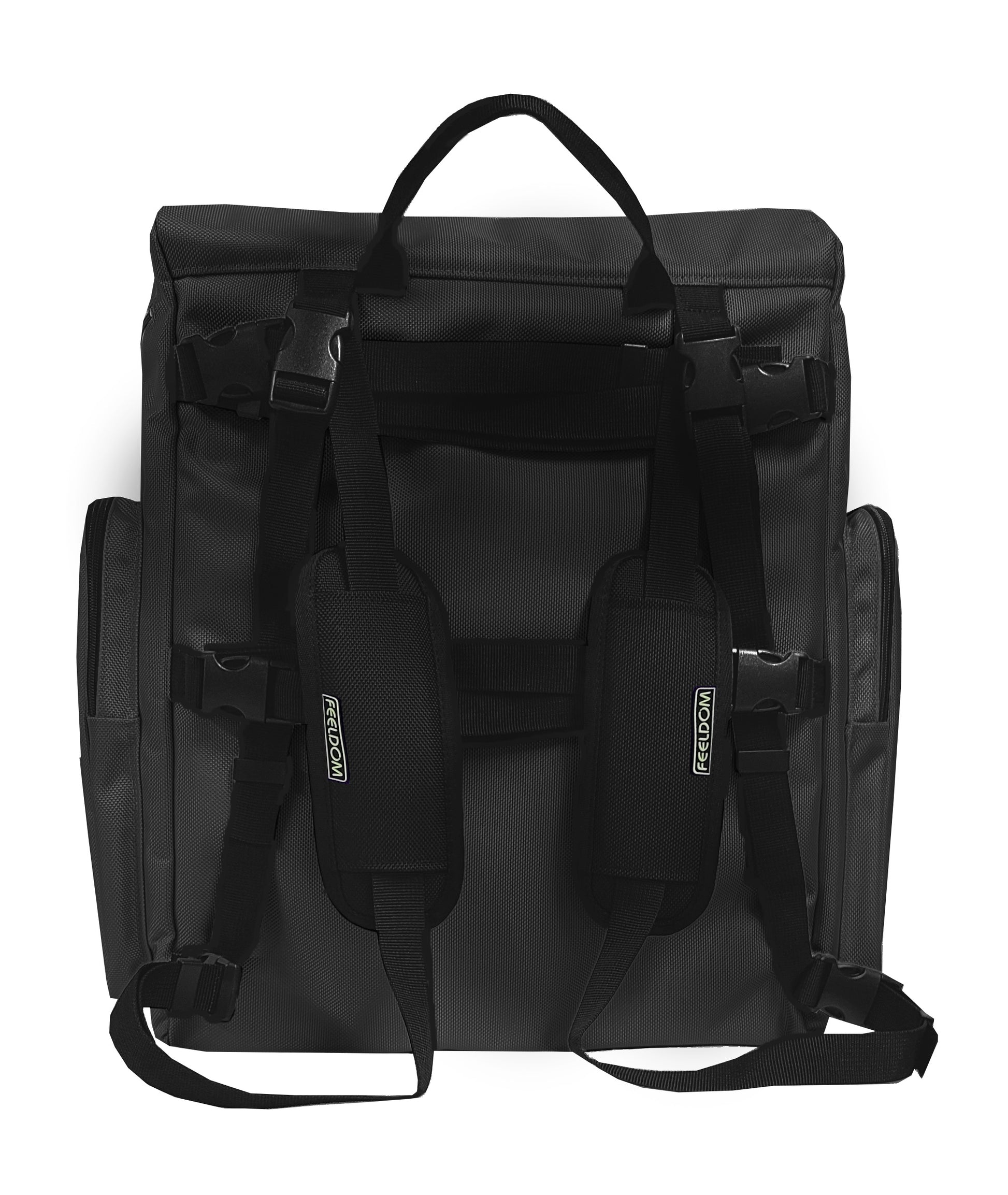 MAX Storage 50+ Liters: With 12 pockets, padded laptop compartment (up to 18.5"), holds small oxygen tank, respirator. Lower front opening to main compartment.