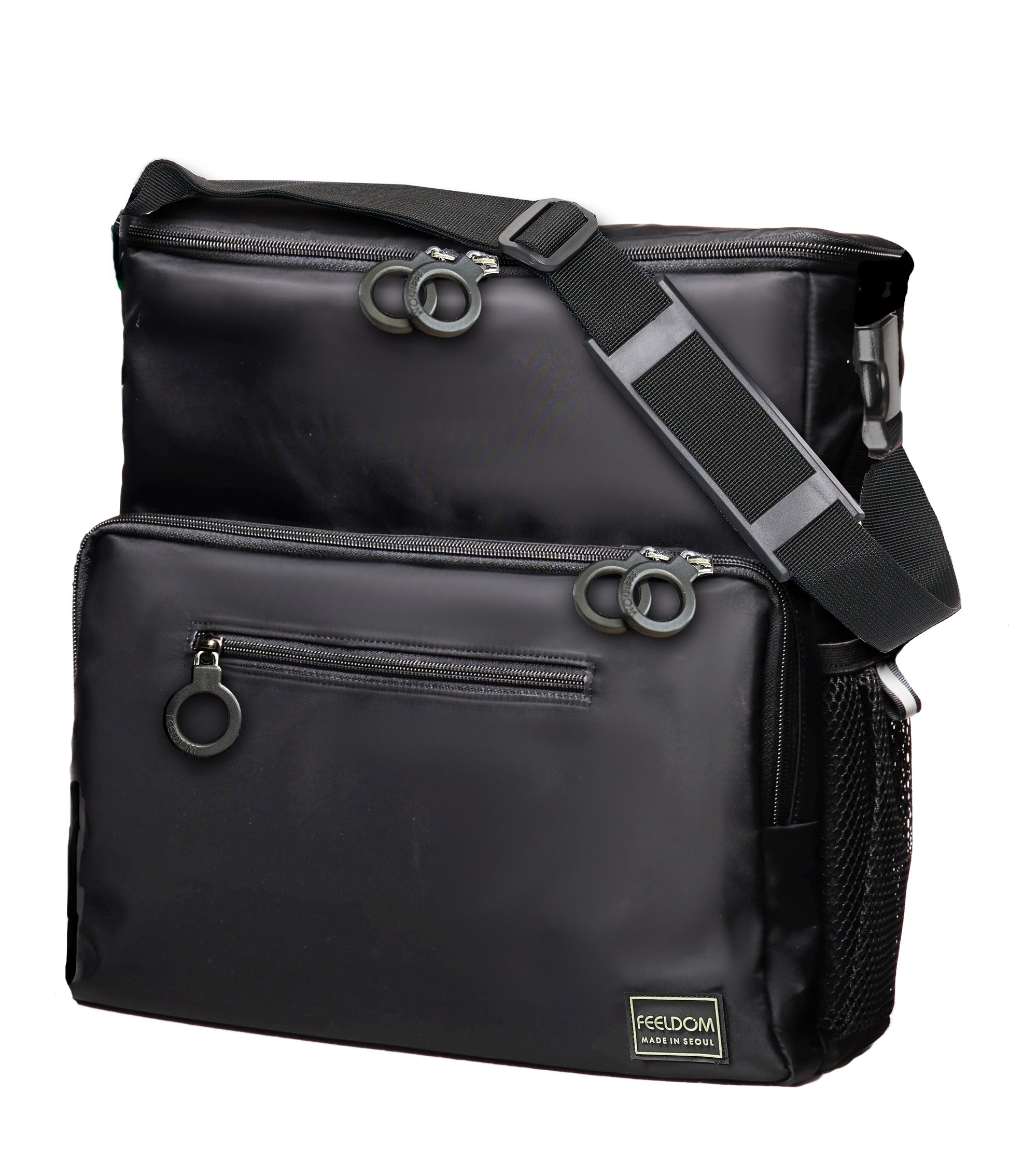 Who says wheelchair bags have to be ugly? Feeldom CHIC Medium stylish unisex Square Tote is adaptable for wheelchairs or shoulder carry with the click of a buckle. Ultra smooth fabric and easy-to-use molded zipper rings. versatile and slim tote bag easily clips onto your wheelchair. Padded pockets protect your electronic gear and valuables. For shoulder carry, CHIC Square Tote has a slim profile, making this perfect for day trips, office and home.