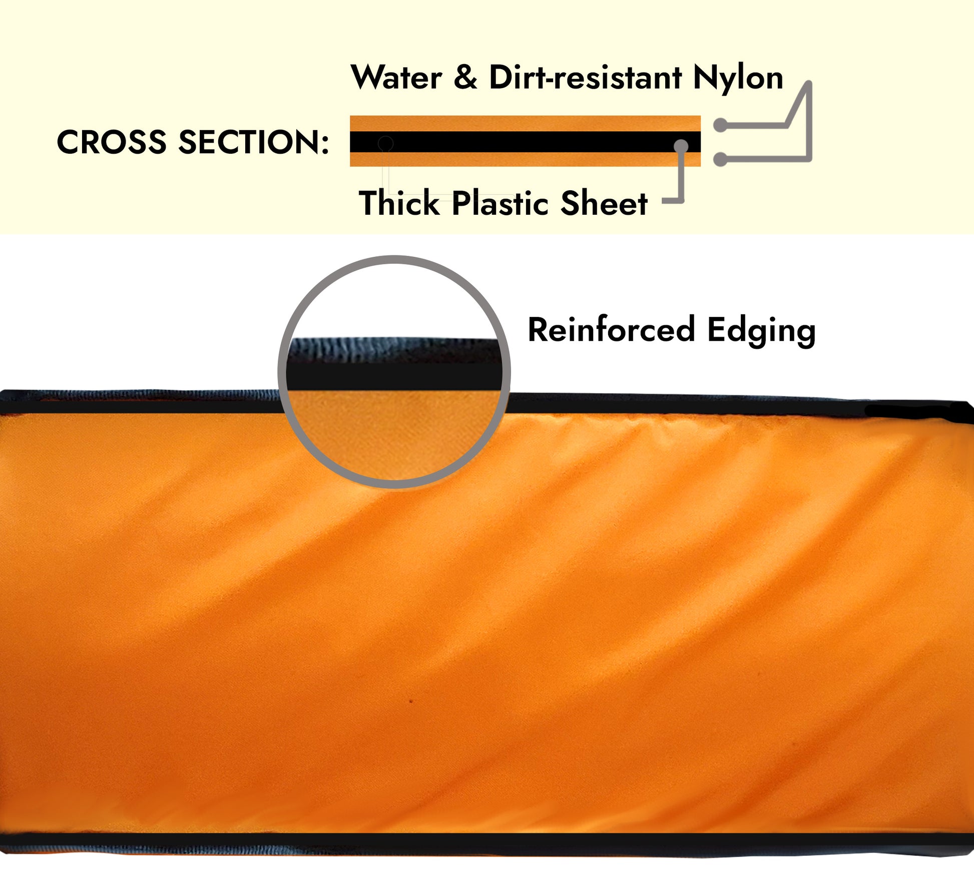 Structure is made of a thick plastic sheet covered by nylon and reinforced edging.